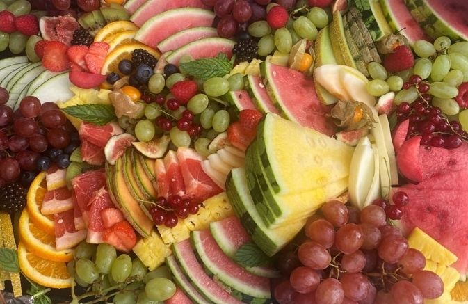 Nach dem Sponsorenlauf durften sich alle Klassen an den Obstplatten, die der Elternbeirat gespendet hatte, stärken.